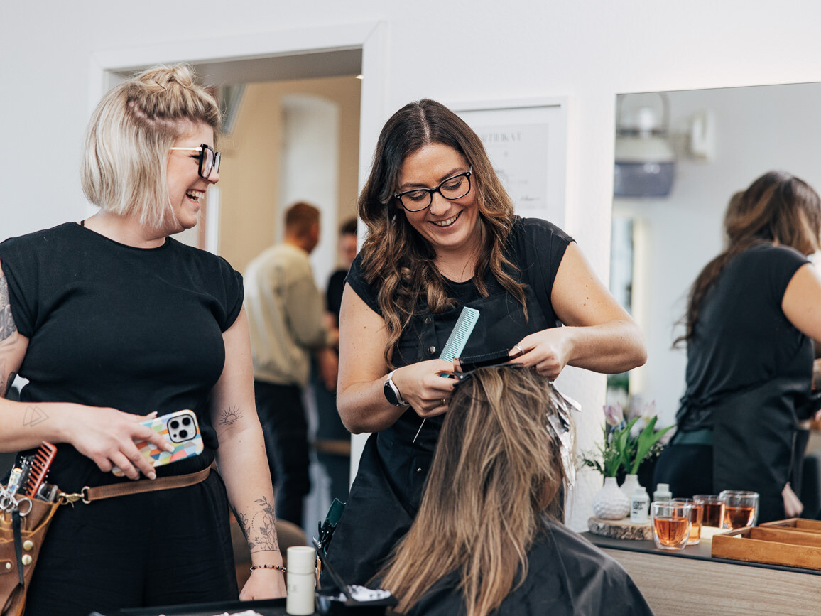 Erfolg bedeutet für uns, mit dem, was wir lieben, unsere Kund:innen zu begeistern und uns dabei ständig weiterzuentwickeln. Und weil wir wissen, dass es im Leben mehr gibt als Arbeit, unternehmen wir auch abseits des Salons einiges zusammen – von Team-Events bis hin zu kreativen Projekten, die uns inspirieren.